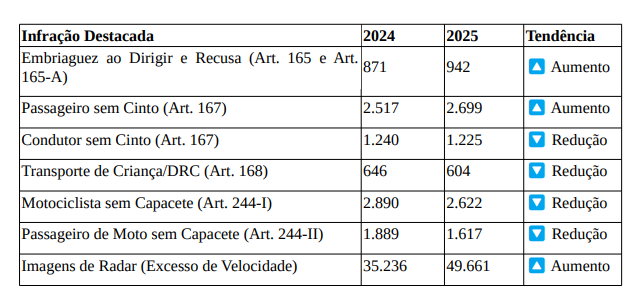 – Abordagens a Veículos: Aumento de 19% (109.652 veículos fiscalizados contra 91.760 em 2024);