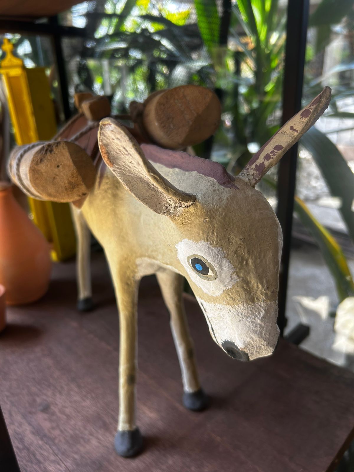Entre as peças expostas estão os burrinhos de couro de Oziel Dias, feitos com materiais da região de Itabaiana (PB) onde o artesão vive. Nas prateleiras, pássaros em madeira de Bento de Sumé (PB) e esculturas do premiado Sérgio Teófilo, de Dona Inês (PB).